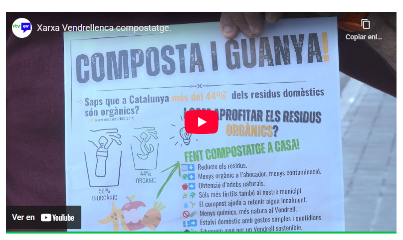 La Federació Xarxa Vendrellenca ha iniciat una campanya de sensibilització adreçada a la ciutadania i al teixit associatiu del municipi per donar a conèixer la possibilitat de reduir un 20% la taxa de residus municipal mitjançant el compostatge domèstic, un benefici fiscal recollit a l’Ordenança fiscal núm. 12 de l’Ajuntament del Vendrell que, malgrat estar plenament vigent, gairebé no s’està aplicant per manca d’informació institucional.